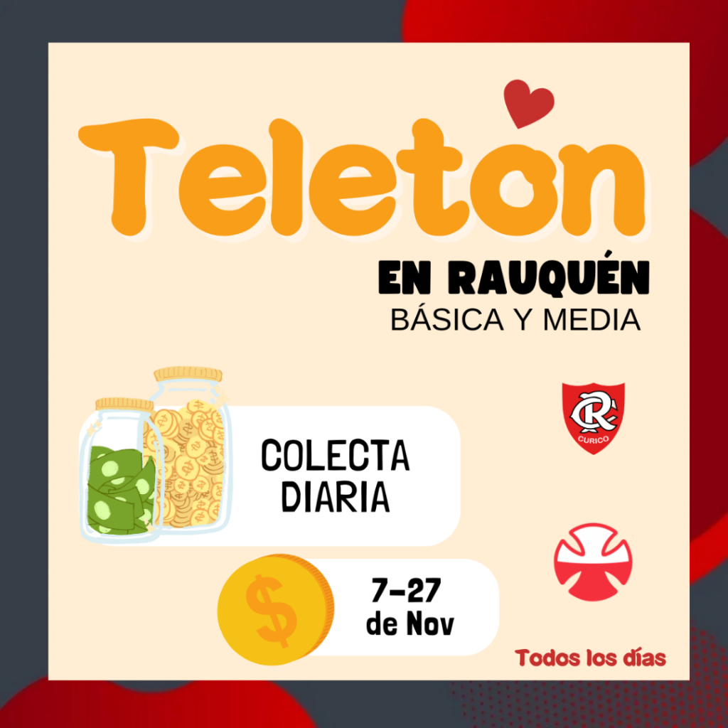 ️ Durante las próximas semanas, nuestro colegio realizará distintas actividades, que permitirán reunir recursos en apoyo a la Teletón 2025, fomentando entre nuestros estudiantes valores como el respeto, la inclusión y el trabajo en equipo.