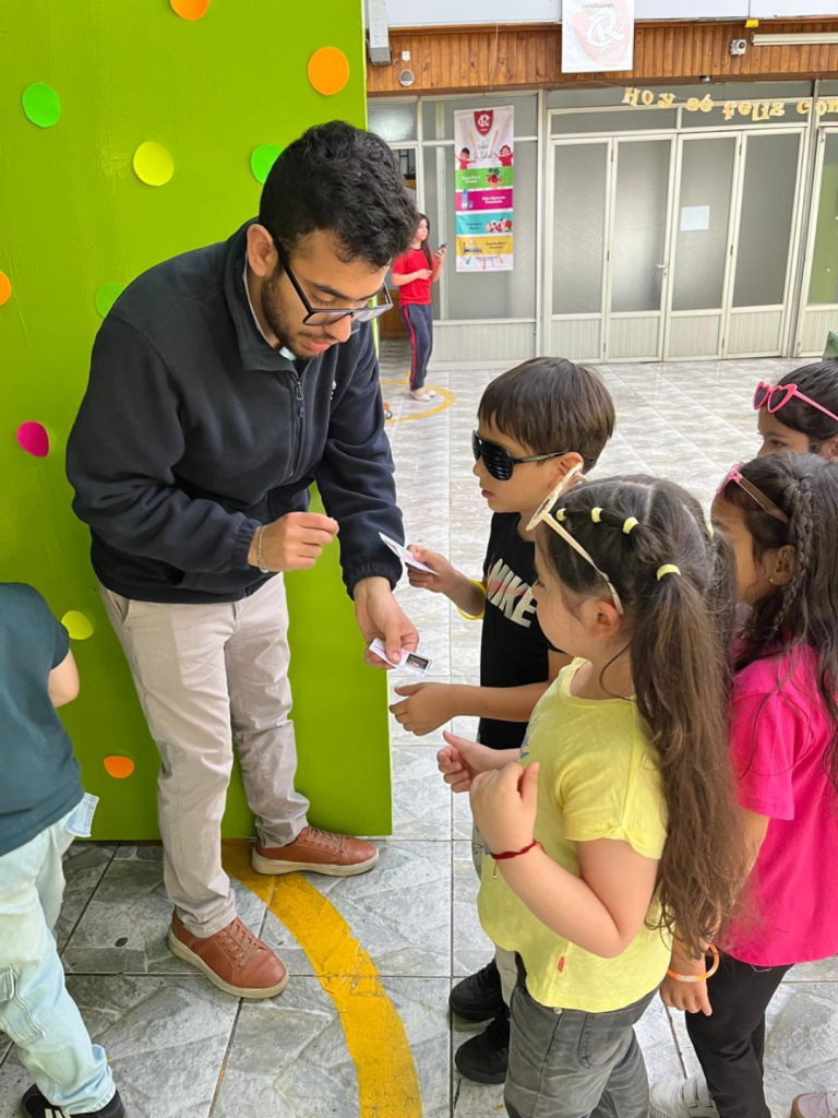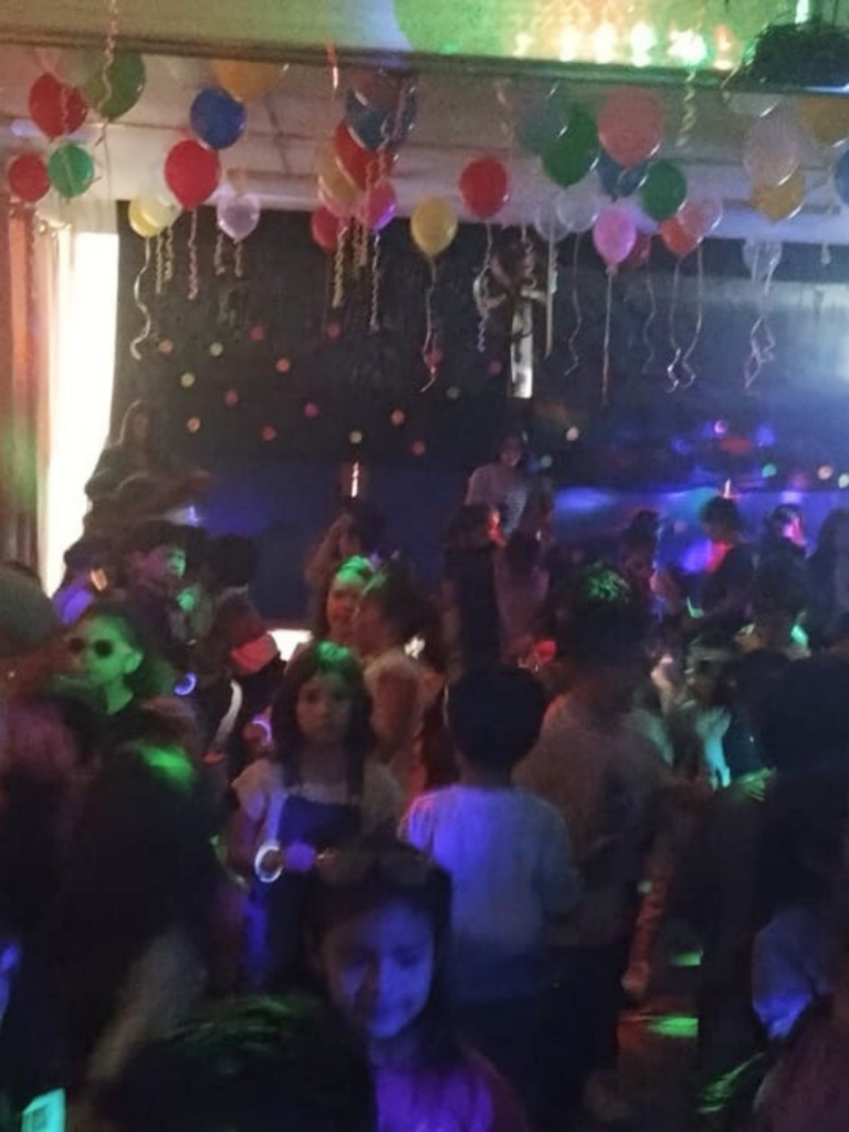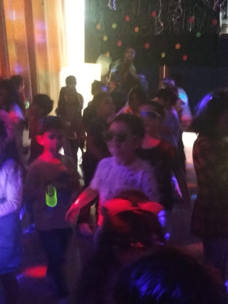 Vestidos a la última moda, con jeans, lentes de sol y con muchas ganas de pasarlo bien, los niños y niñas de Kinder llegaron hasta la biblioteca del local Rauquén que se convirtió en una discoteque, preparada exclusivamente para ellos y ellas por sus tías y por funcionarios del colegio.
