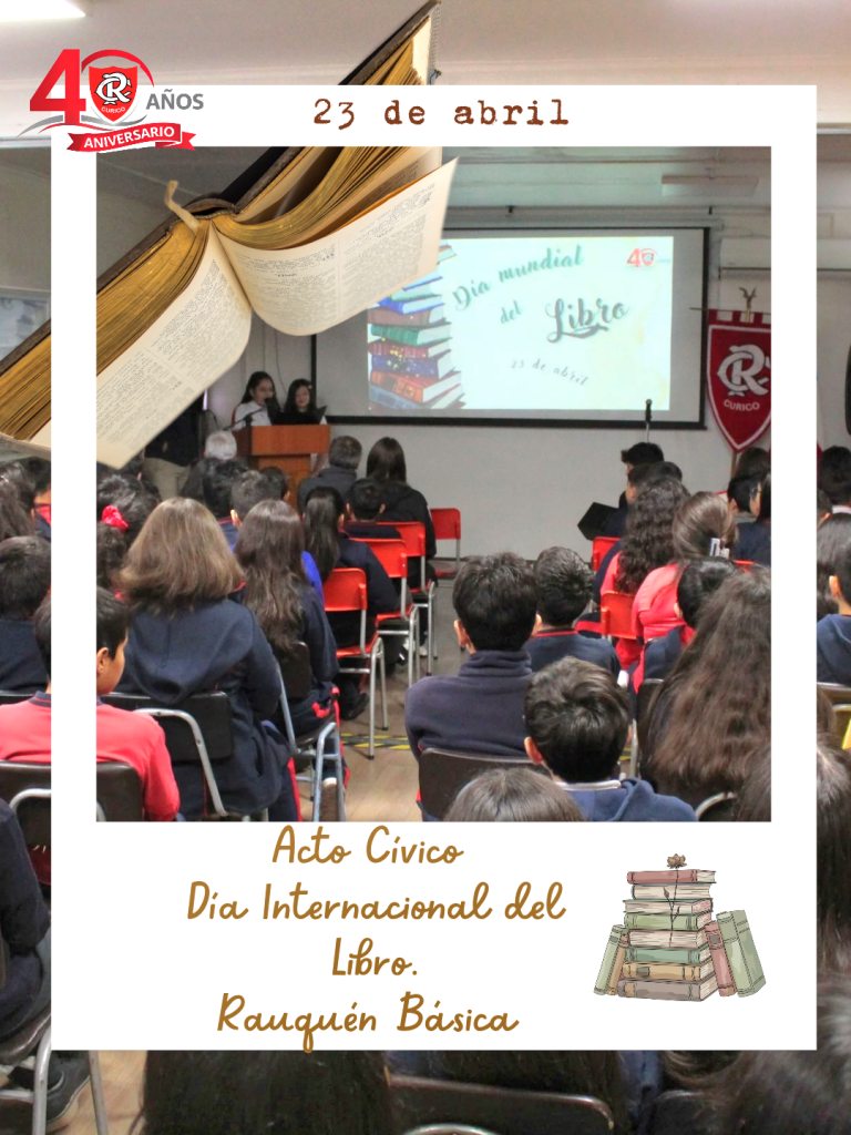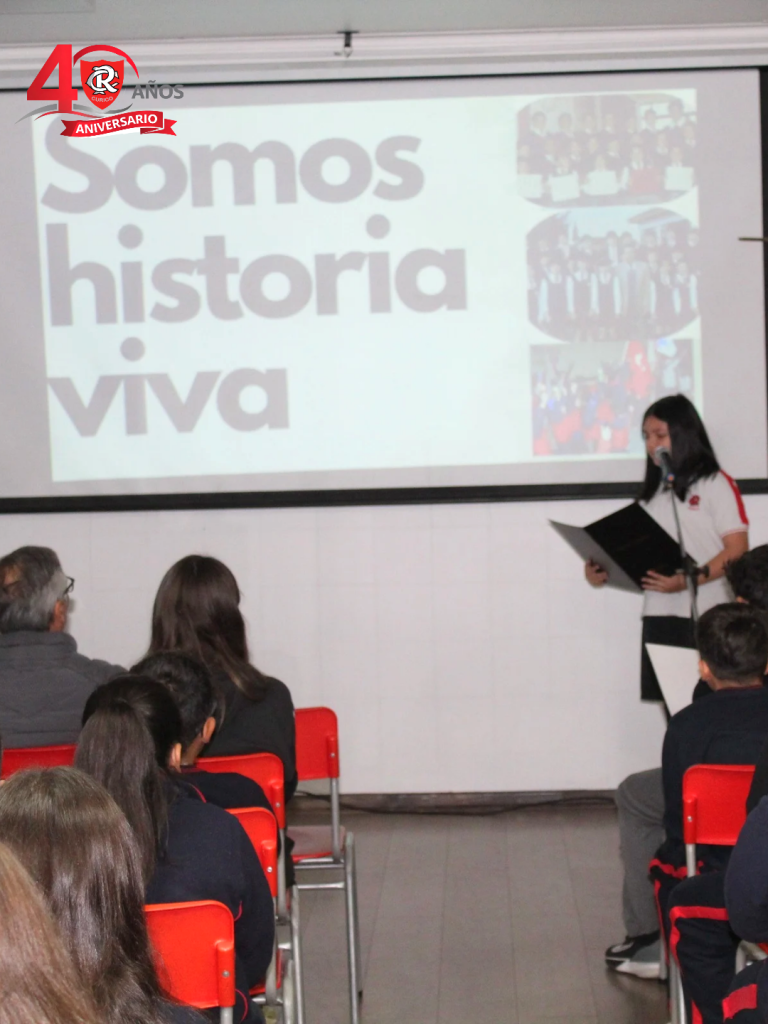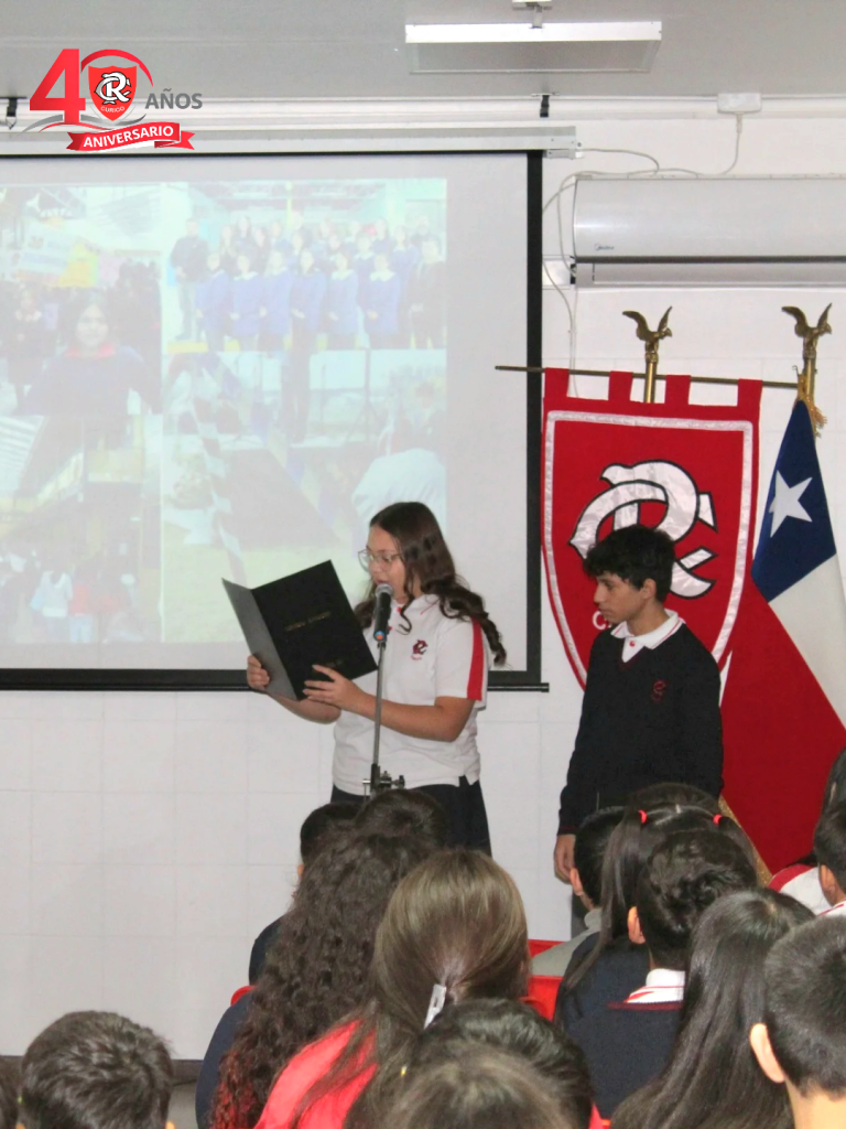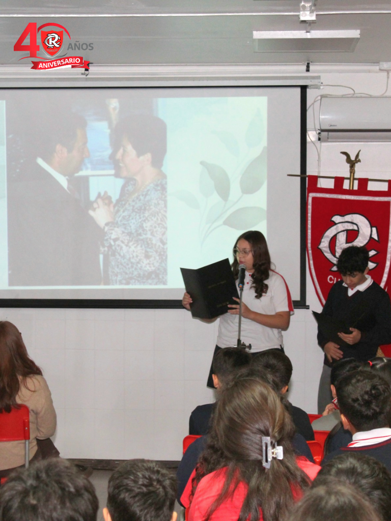 En esta ceremonia, se realzó esta efeméride y se enlazó con el 40° aniversario del Colegio Rauquén, destacando el lema del mes de abril “Somos historia viva”, recordando a nuestros fundadores, la tía Elena Reyes y el tío Tito Tello, a todos quienes han integrado y a los que hoy formamos parte de este establecimiento.