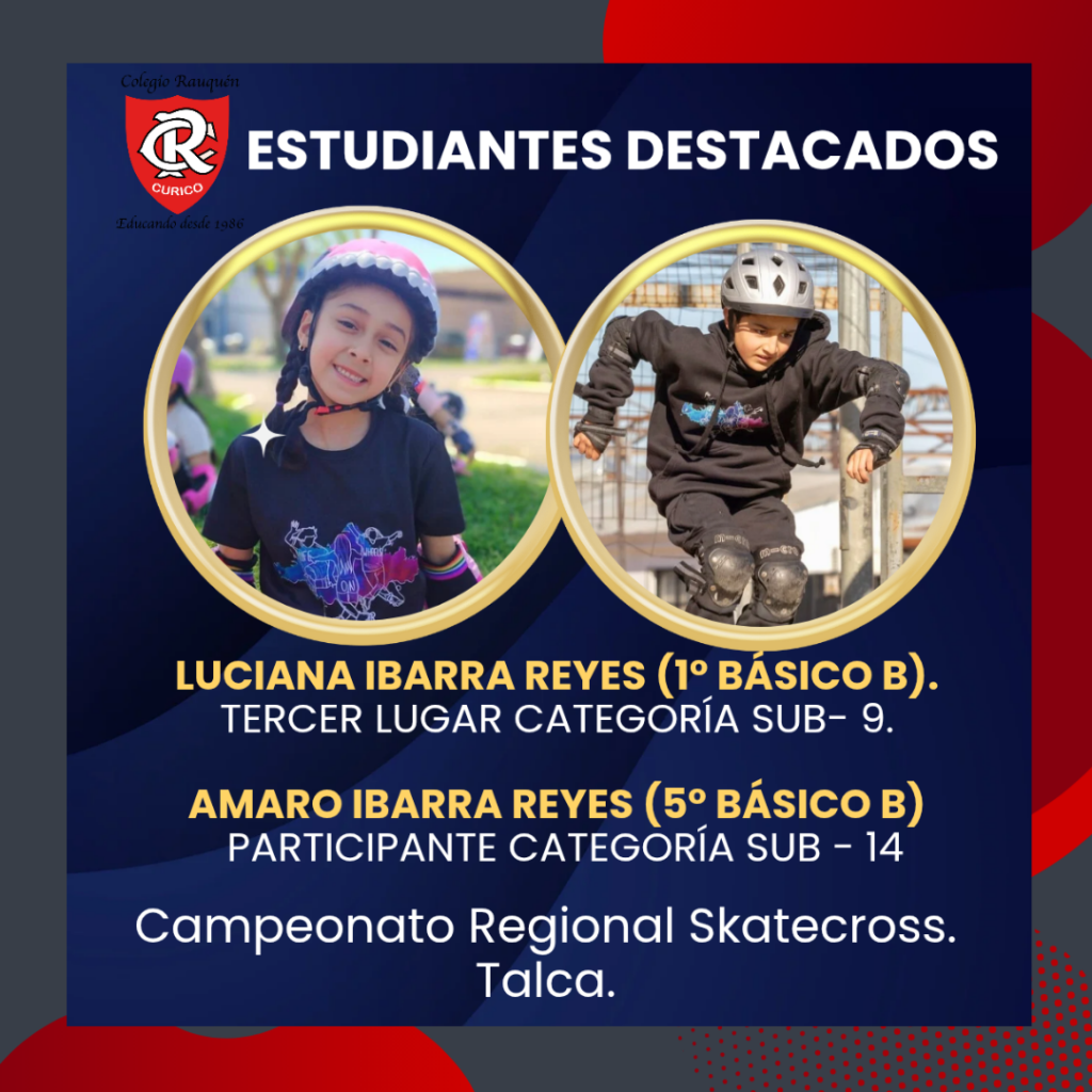 Hace unos días, Luciana y Amaro compitieron en el Campeonato Regional de Skatecross , que se realizó en la ciudad de Talca. Luciana logró el tercer lugar en su categoría (Sub – 9); y Amaro quedó ubicado en los primeros puestos, en este exigente certamen.
