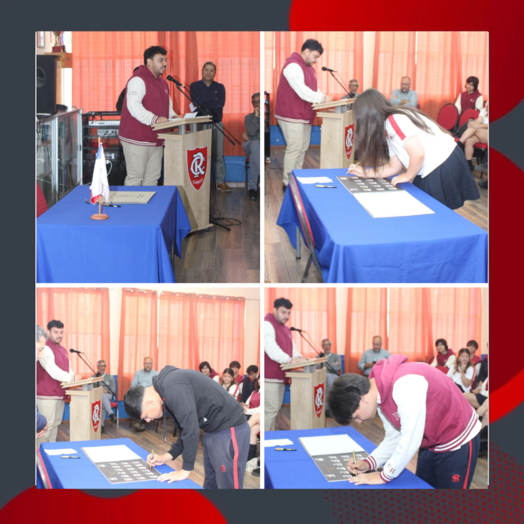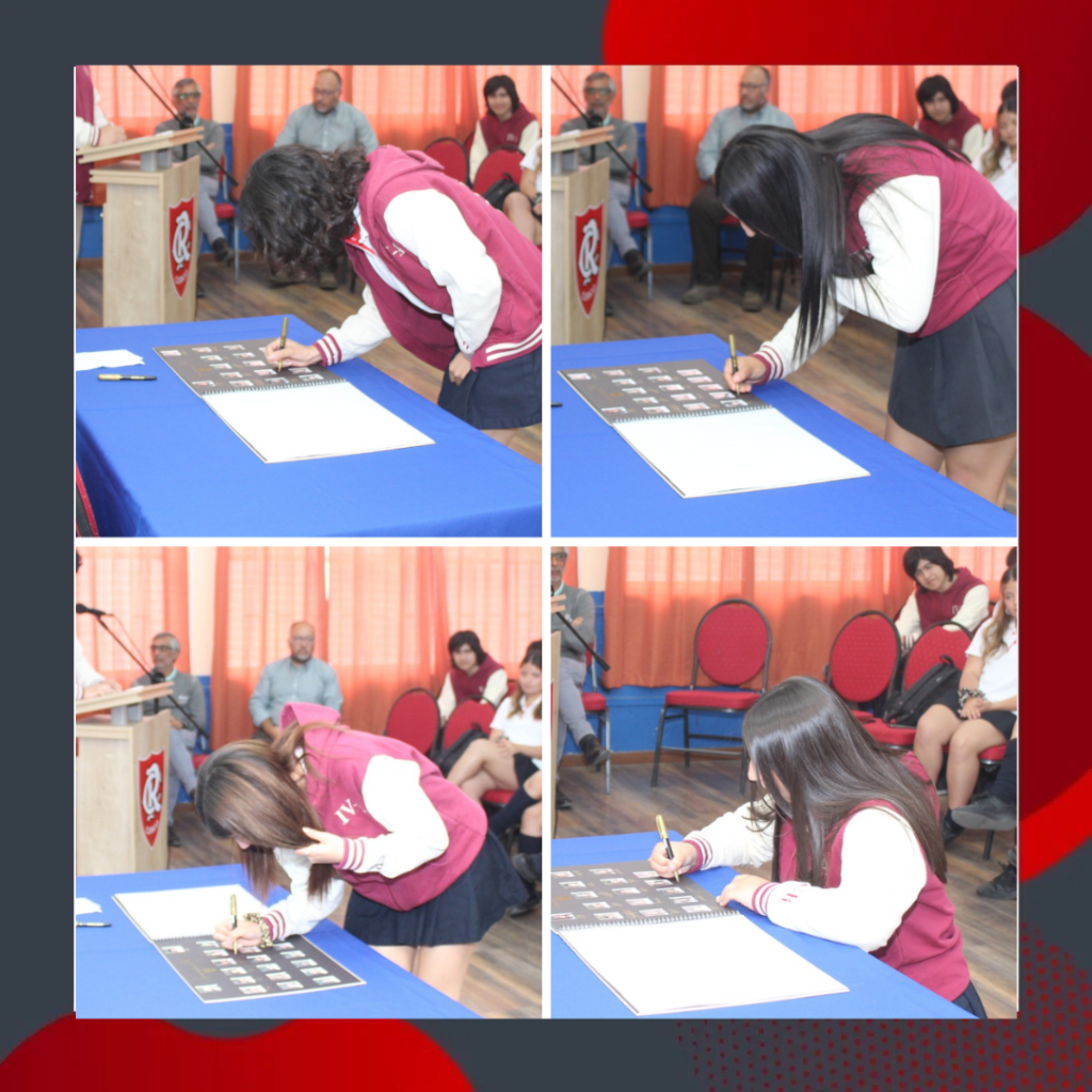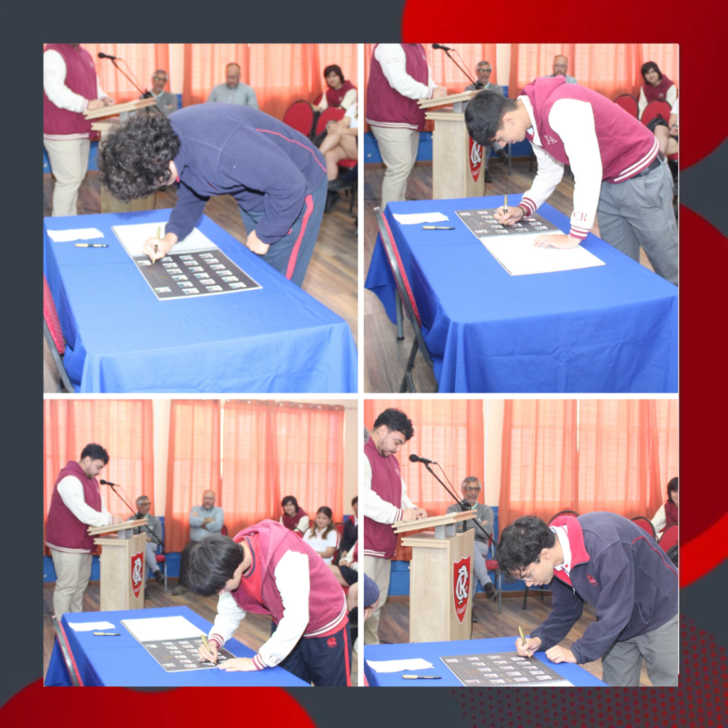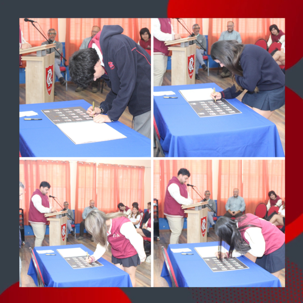En la mañana de hoy, nuestros estudiantes participaron de una emotiva ceremonia, en la que, por última vez, dijeron presente cuando el profesor Franco Monsalve los nombró al pasar la lista, y fueron avanzando hacia adelante para cumplir con la tradición de firmar el libro de ex alumnos, que quedará como uno de los recuerdos de su paso por el colegio.