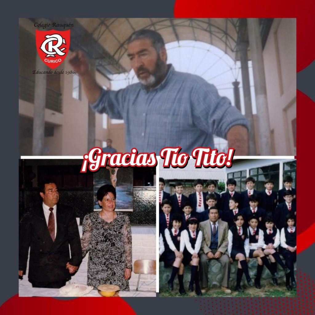 Héctor Tello Romero, el tío Tito, profesor normalista y fundador de nuestro establecimiento, nos dejó hace 8 años. Pero su vocación, su sueño más querido, que nació en 1986, forjado codo a codo junto a su esposa y colega, la tía Elena Reyes Norambuena, y sus hijos, sigue creciendo. Y cada uno de nosotros, que formamos parte del Colegio Rauquén, somos los encargados de mantener vivo ese legado.