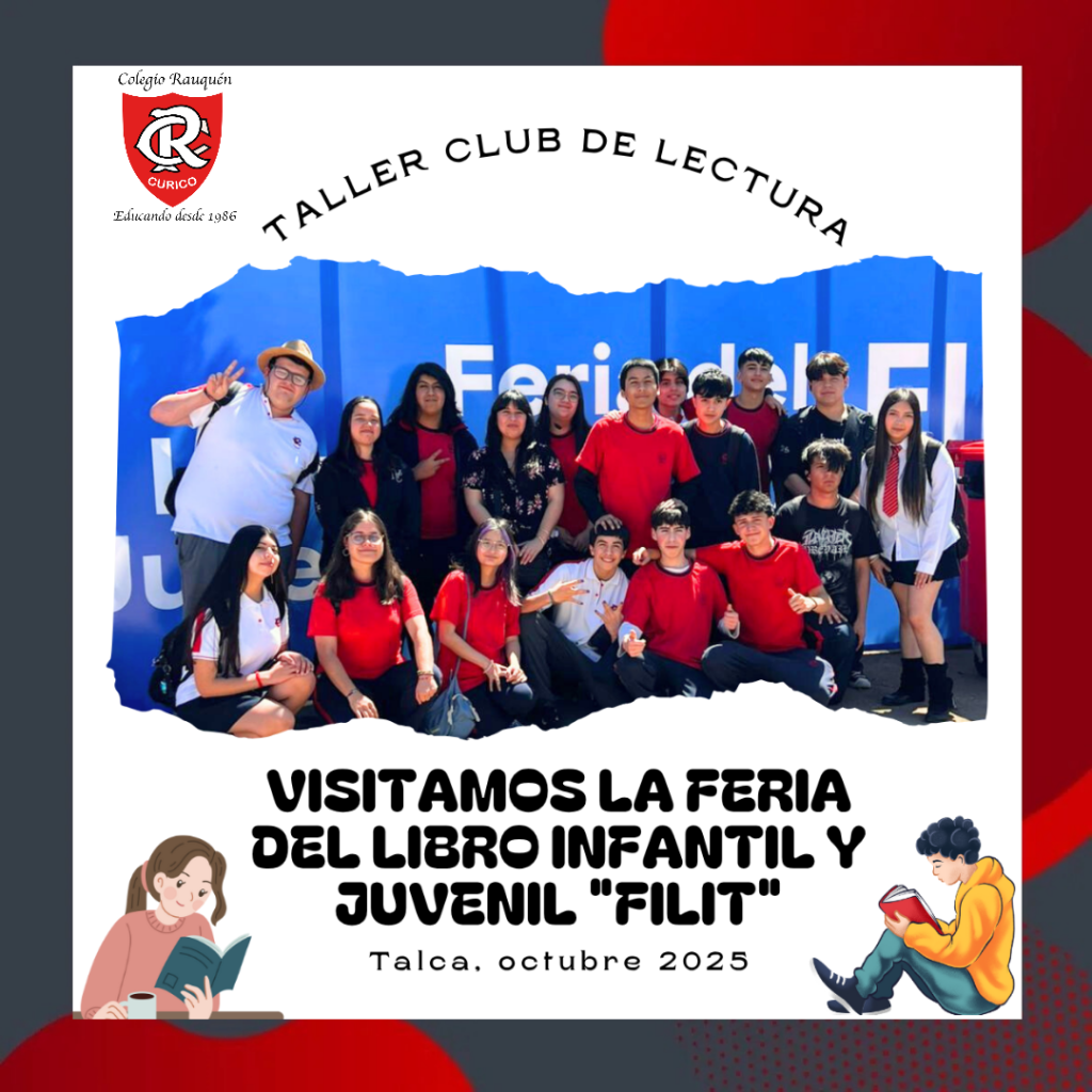 Las y los estudiantes del Club de Lectura del Colegio Rauquén, acompañados por los profesores Fernanda Chaparro, Catalina Cornejo, Lorena Roa y Christian Tello, viajaron hasta la ciudad de Talca para asistir a la 19° versión de la Feria del Libro Infantil y Juvenil, organizada por el Departamento de Extensión de la Universidad Católica del Maule.