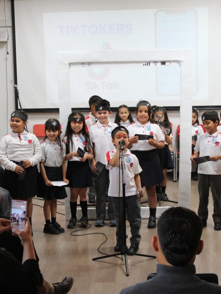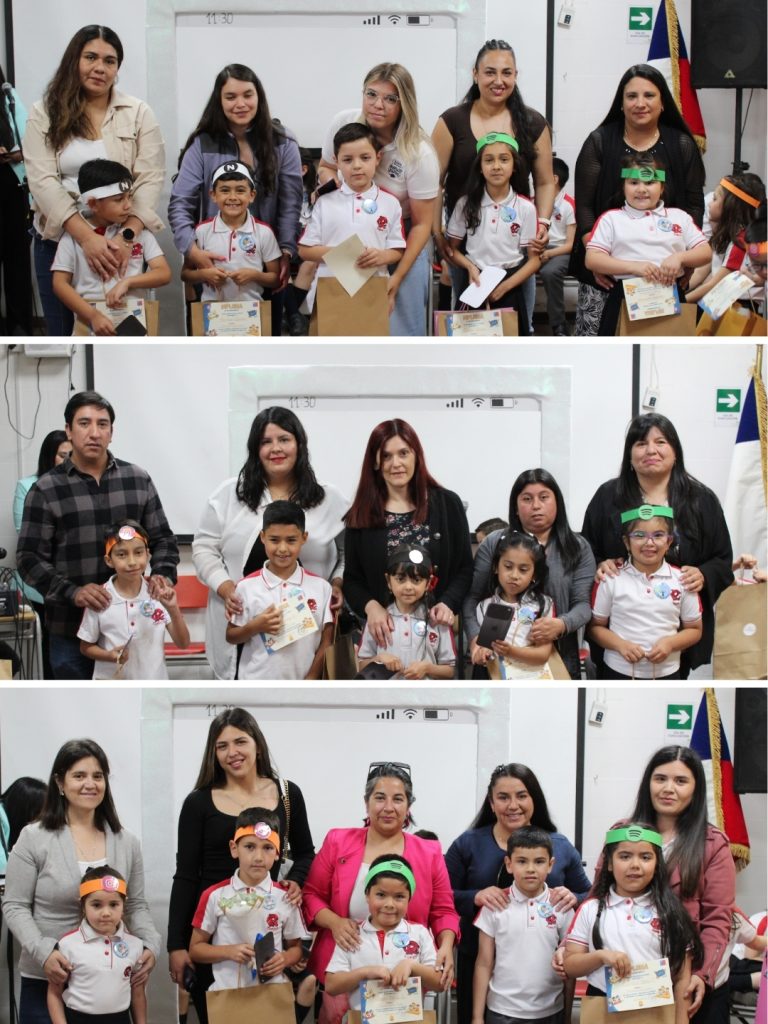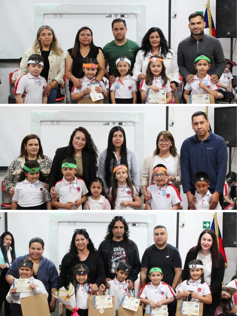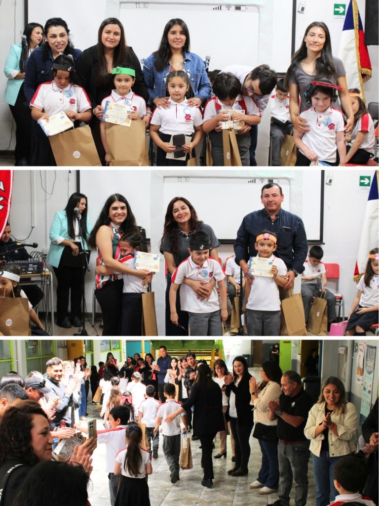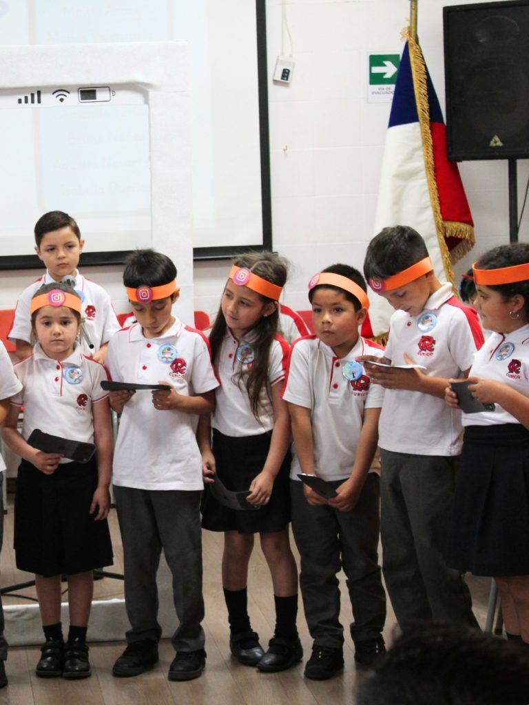 Las alumnas y alumnos de este curso, junto a su profesora jefe Marcela Fuentes y las tías asistentes Francisca Gaete y Cynthia Ramirez, se convirtieron en influencers para sorprender a sus familias , a las autoridades y a los funcionarios del colegio, con una gran noticia: ¡Ya son lectores! Esta información alegró y emocionó a todos los presentes.