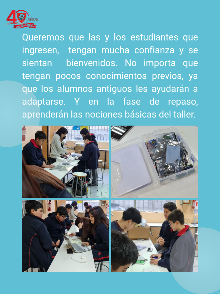 En estos tiempos, tener información sobre las nuevas tecnologías es imprescindible. El profesor Felipe Díaz, comparte sus conocimientos en este grupo, en el que nuestros estudiantes aprenden en la práctica, trabajando en equipo, para lograr los desafíos que se les propone.