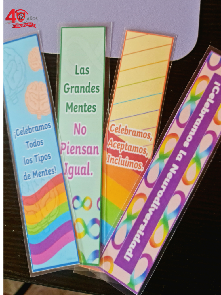 El equipo CEO entregó a las alumnas y alumnos, marcapáginas con mensajes significativos e invitaron a los jóvenes a completar con sus huellas digitales el símbolo del infinito que representa al autismo.