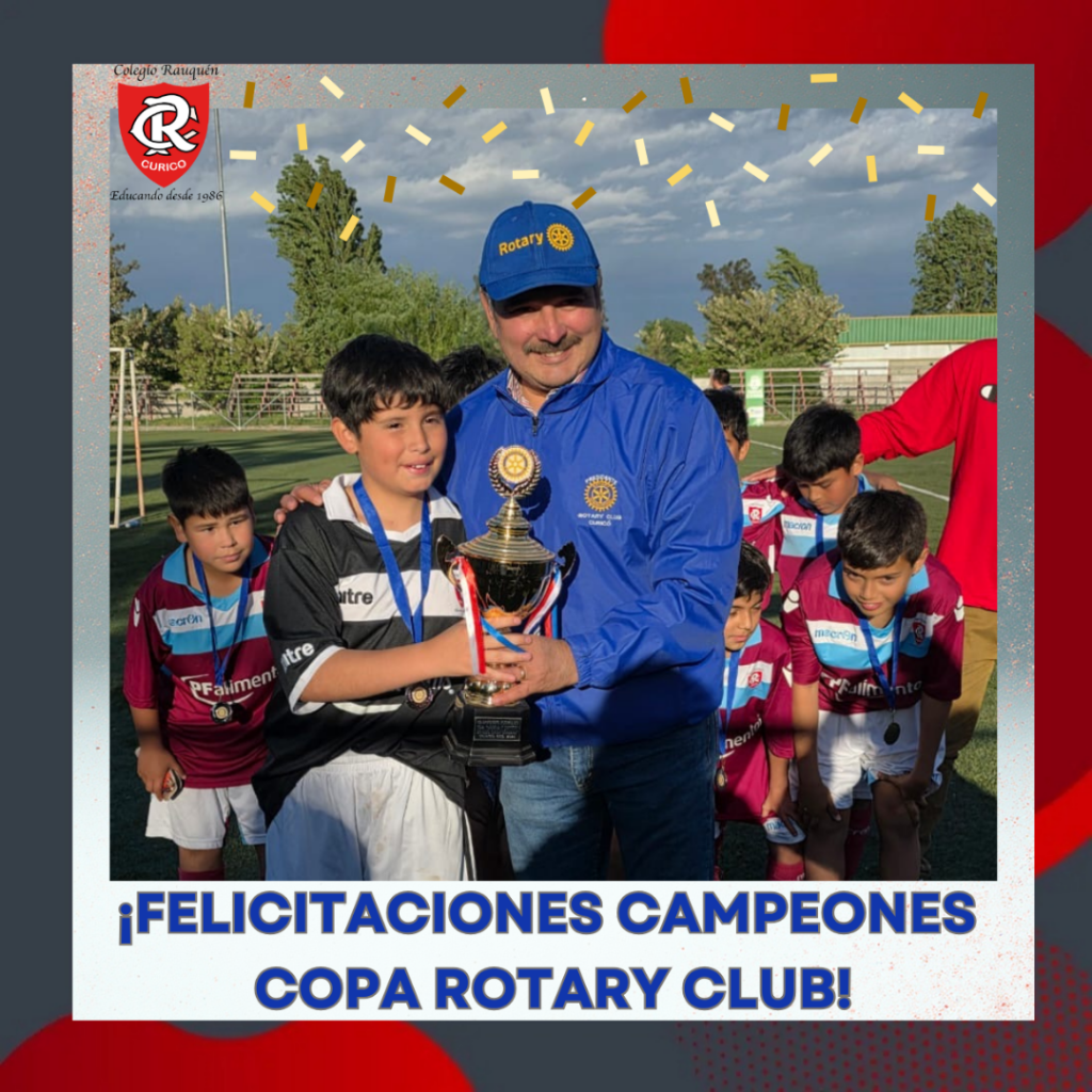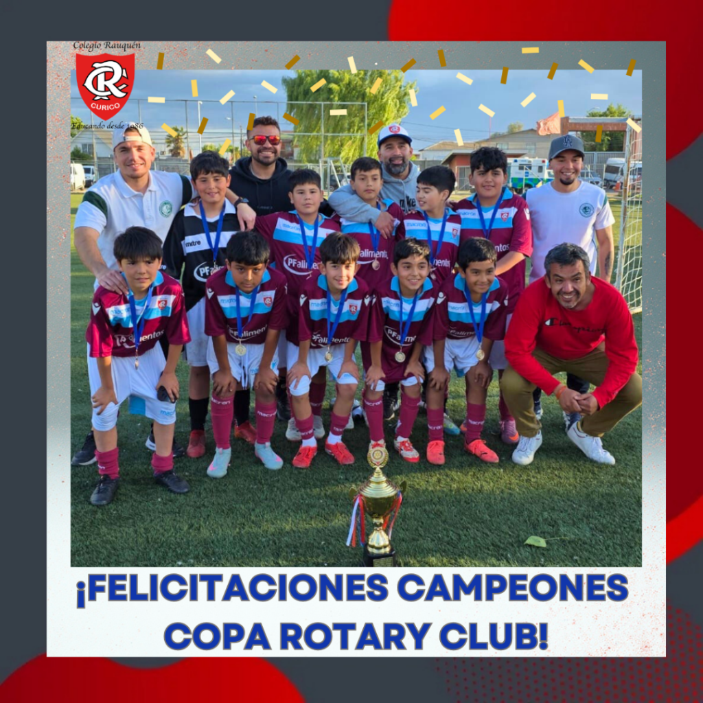 ️ Los alumnos de la categoría 2014- 2015 ganaron la “Copa Rotary Club Curicó “, tras vencer en la final del torneo al equipo del Colegio Alta Cumbre. En esta competición, los estudiantes contaron con el apoyo de sus entrenadores, los profesores Diego Cordero y Roberto Morales.